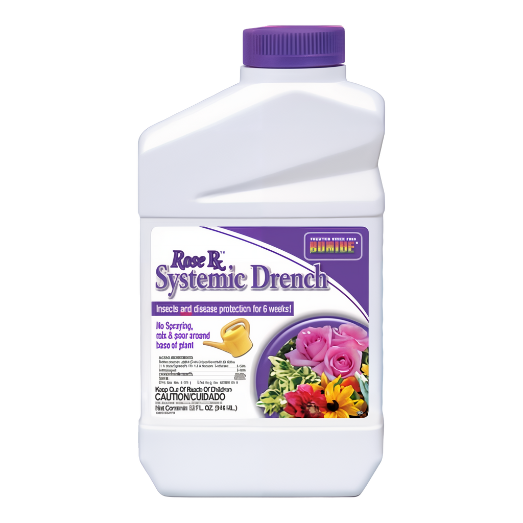 Protect roses and flowering shrubs with Bonide Rose RX Systemic Drench. Stop chewing and sucking pests while guarding against common leaf diseases for up to six weeks—without pulling out a sprayer. Mix the 1 qt concentrate, drench the soil, and keep blooms looking their best.