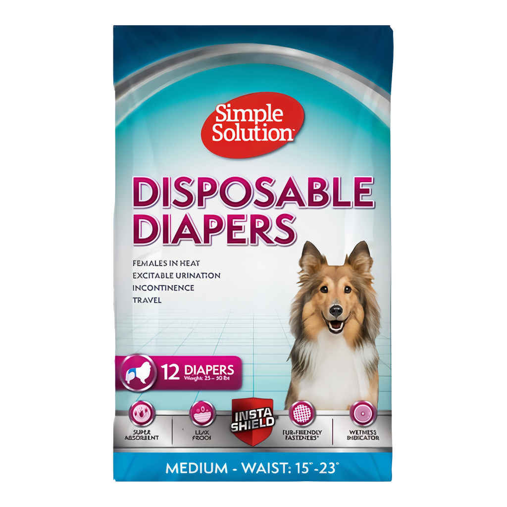 Keep accidents off your floors and enjoy calmer outings with Simple Solution Disposable Diapers for female dogs. Support your dog through leaks and heat cycles with a soft, stretch-fit design that stays put and keeps her comfortable. Rely on fast-absorbing protection to help you focus on cuddles and walks, not cleanups.