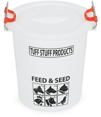 Protect your feed and seed from moisture, sun, and pests with the Tuff Stuff Products 7 Gallon Feed and Seed heavy-duty plastic drum bucket pail with locking lid. Keep rations dry and fresh in the barn, trailer, or garage. Lift and go: the empty pail weighs just 3.92 lb, so moving up to 7 gallons stays manageable.